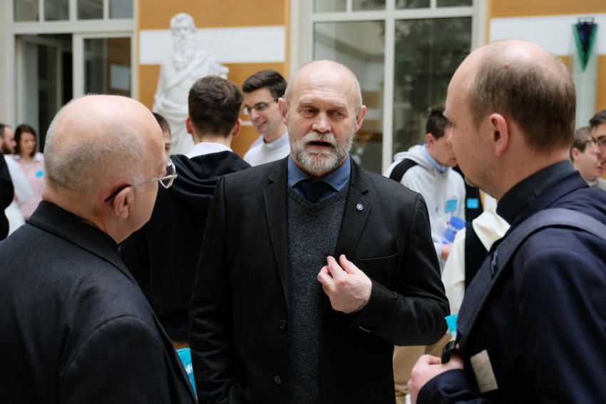 Guba András rektorhelyettes felidézte az UNITAS kezdeteit. A szocialista időben minden év november 7-én a bencések, ferencesek és piaristák vidéken tartottak UNITAS-jellegű találkozót, és az ott szövődő ismeretségek, barátságok voltak az alapjai annak, hogy a korábban különálló kis teológiai főiskolák össze tudjanak kapcsolódni, együtt tudjanak működni, és végül megnyíljon a Sapientia. A találkozások tovább folytatódtak, a ’80-as évektől más rendek is bekapcsolódtak, és így alakult ki a mai UNITAS, amelyet évente megrendeznek.