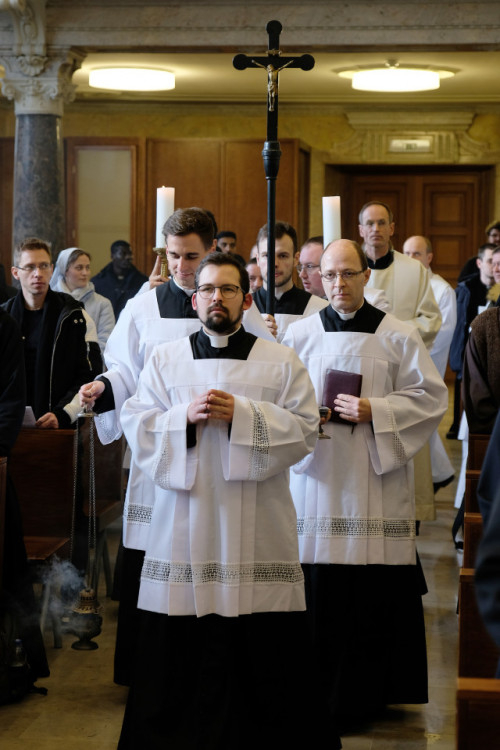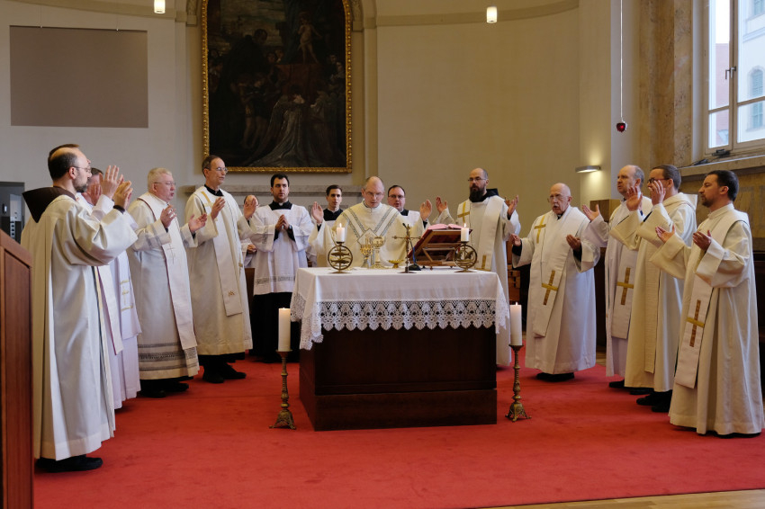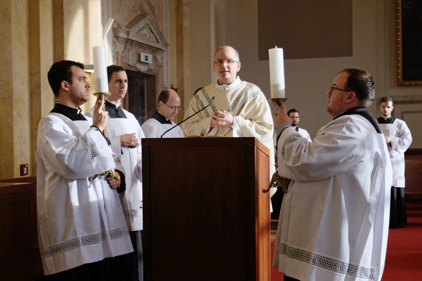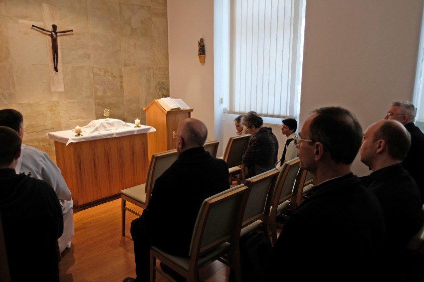 A 15 órakor kezdődő koncelebrált szentmisét a piarista kápolnában Csépányi Gábor, az Esztergomi Érseki Papnevelő Intézet spirituálisa mutatta be.