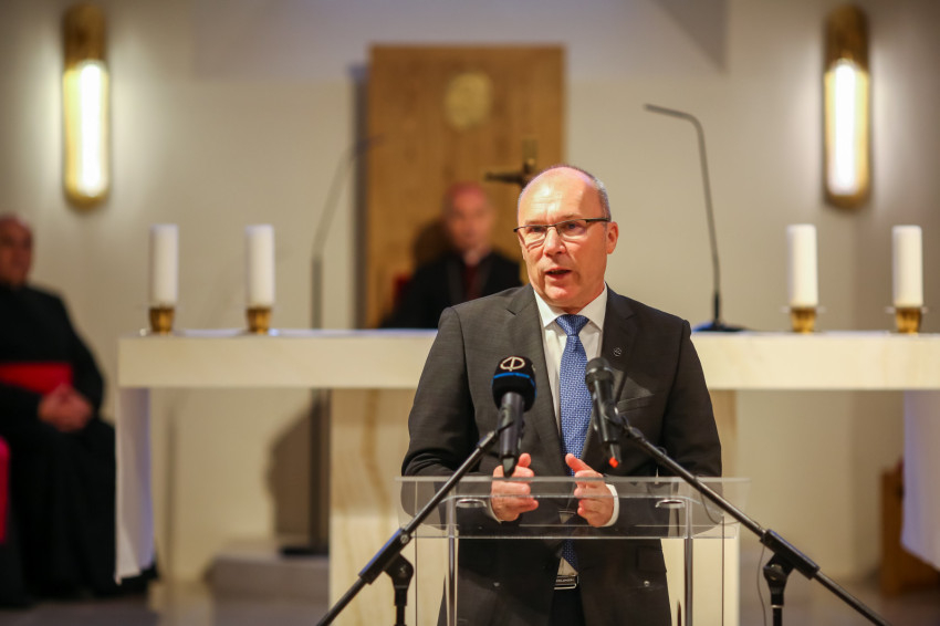Navracsics Tibor Veszprém szülötteként köszöntötte az ünneplőket. A tárca nélküli miniszter emlékeztetett: Közép-Európában a 7. század elején a salzburgi érsekség a nyugati rítusú keresztény egyház legkeletibb bástyája, míg Veszprém a kereszténység peremvidéke volt; a magyarság jövője lényegében mégis e helyen dőlt el. Később a vár adott otthont Magyarország első egyetemének is. Az 1970–80-as évek regressziója nem kímélte Veszprémet sem. A Várnegyedre megbecsülendő épületegyüttesként tekintettek, de úgy vélekedtek, a múlthoz tartozik. A figyelem helyette a „korszerű jövőre”, a Cserhát városrészre, s benne a híres húszemeletes házra, illetve az új, „modern” lakótelepekre irányult. Ezzel együtt a Várnegyed kereszténységünk és magyarságunk egyik bölcsője, mostani nagyszabású megújulása ezért is bír óriási jelentőséggel – hangsúlyozta Navracsics Tibor.