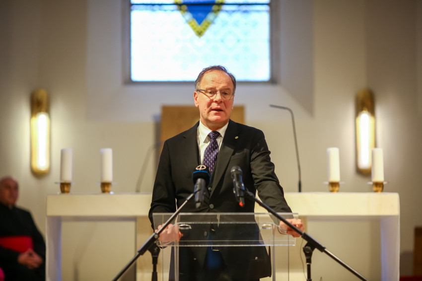 A kedvezőtlen időjárás miatt az ünnepi beszédekre a székesegyházban került sor. A vendégeket Takács István általános helynök, főszékesegyházi plébános köszöntötte.