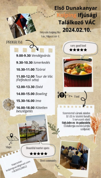Első alkalommal került megrendezésre a Váci Kolping Család szervezésében a Dunakanyar Kolping Ifjúsági Nap. Ez alkalomból a váci „kolpingosok” hívták meg és látták vendégül az esztergomi és gödöllői Kolping családok fiataljait. A program lehetőséget nyújtott az ismerkedésre, közös játékra, Vác városának felfedezésére és a lelki elmélyülésre is. A közös együttléthez 25 fiatal és 3 kísérő, valamint 6 váci „kolpingos” segítő és a Váci Kolping Család prézese, Varga Lajos váci segédpüspök csatlakozott.