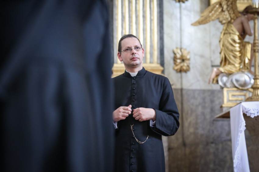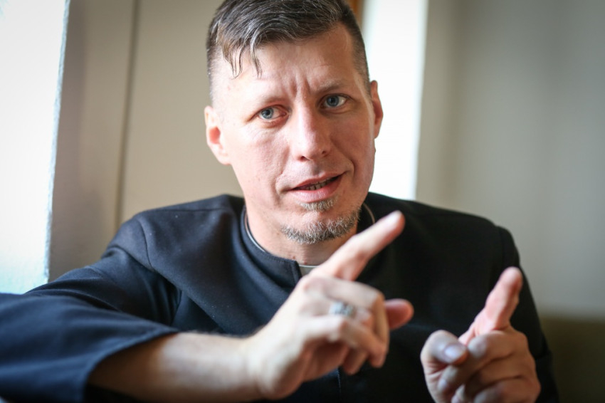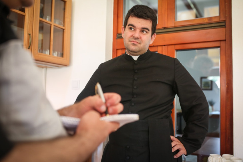 Pár perc múlva a nagyszerű kávét szürcsölgetve, amelyet vendéglátóink készítettek nekünk, már a közösségi teremben ülünk a plébánossal. Tizenöt éve pap, ide nyolc évvel ezelőtt került, Egyek az első plébánosi helye, meséli. Először kissé megszeppent a feladattól, és megkérdezte lelki mesterét, Barsi Balázst, mire figyeljen leginkább. Azt a választ kapta, hogy a liturgia szeretetére, a hívek liturgikus formálására.