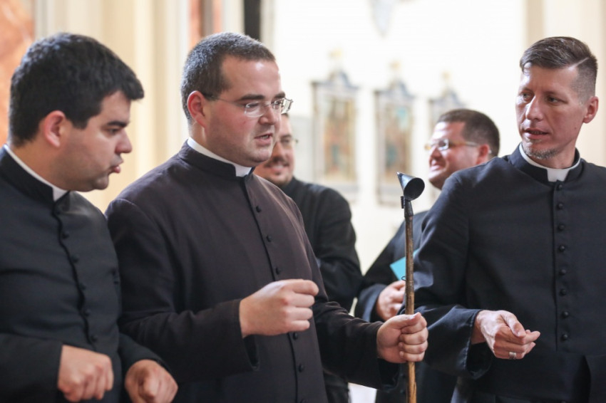 A vesperás próbáját Kiss Bertalan táborvezető, a Juventutem Magyarország vezetője, a Foederatio Internationalis Juventutem nemzetközi szövetség elnöke vezeti. „A mély meghajlásra figyeljetek!”, „Ekkor majd lekerül a mitra, és visszakerül a bakula”, „Elvonulunk az oltárhoz incenzálni” – a megbeszélés, egyeztetés ilyesféle mondatok formájában történik; mindenki nagyon figyel, koncentrál, de jó a hangulat, és sok a nevetés is.