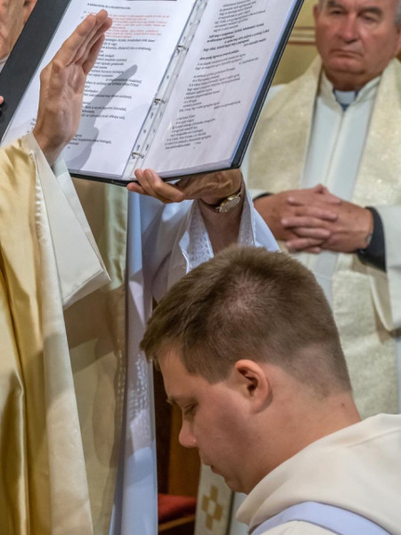 Végül Jézus Szentséges Szívének ünnepe kapcsán Ferenc pápa gondolataival bátorította a szentelendőt a főpásztor, miszerint a pap Krisztus módjára hálás szívű, irgalmas és készséges szívű, éber szívű, a papnak bátor és együttérző a szíve.
