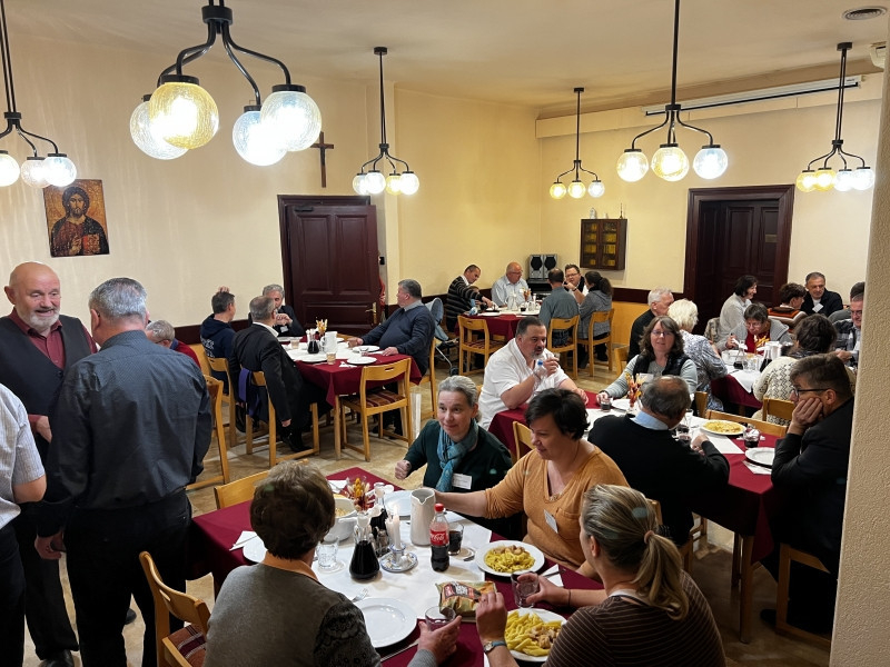 A péntek esti közösségi este párhuzamosan futott: míg a férfiak szolgálatukkal kapcsolatos tapasztalataikat osztották meg, addig a diakónusfeleségeket „hölgyprogramra” várták, ahol szintén lehetőség nyílt lelki élmények megosztására és a közösség örömteli megélésére Völgyesi Krisztina vezetésével.