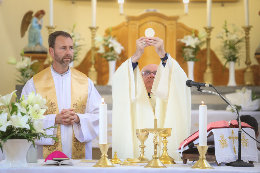 Kereszténynek lenni nagyon egyszerű és könnyű dolog, mindössze két parancsot kell megtartani: „Szeresd Istent teljes szívedből, teljes lelkedből, teljes elmédből, egész lényedből”; és „Szeresd felebarátodat, mint saját magadat”. S kereszténynek lenni nem könnyű dolog, mert csak két parancsolatot kell megtartani – kezdte szentbeszédét Varga László megyéspüspök. – Valamennyien ugyanannak az Istennek a gyermekei és képmásai vagyunk. És ez az Isten a Szeretet. A szentháromságos Szeretet-Isten képmásai vagyunk, ezért nem tudunk szeretet nélkül élni.