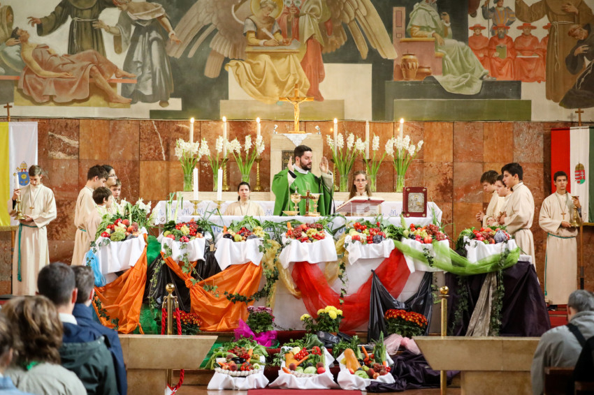 Utal is rá a felajánlási imádság, amelyben azt mondjuk: hálát adunk Istennek, hogy az Ő bőkezűségéből kaptuk a kenyeret, felajánljuk, mint a föld termését és az emberi munka gyümölcsét – és ezt ezen a vasárnapon, mint szerte a világban, mi is megköszönjük.