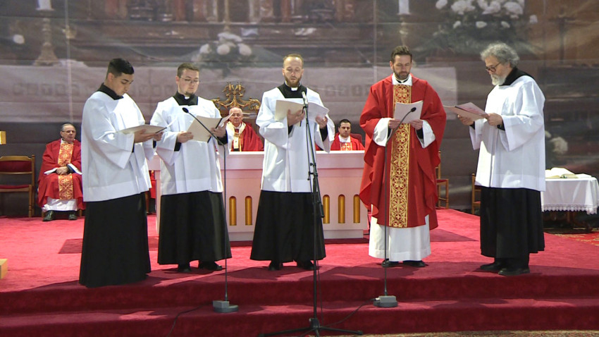 Az igeliturgiát követően Urbán Péter karnagy, Lóczi Tamás spirituális és a kispapok kórusa közösen énekelte el a passiót, Szent János evangelista írása szerint.