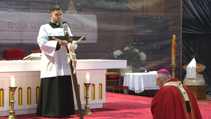 Az érseki beszédet az egyetemes könyörgések követték, majd a keresztet az oltár elé vitték, amely előtt a főpásztor, a papság és a hívek kifejezték hódolatukat.