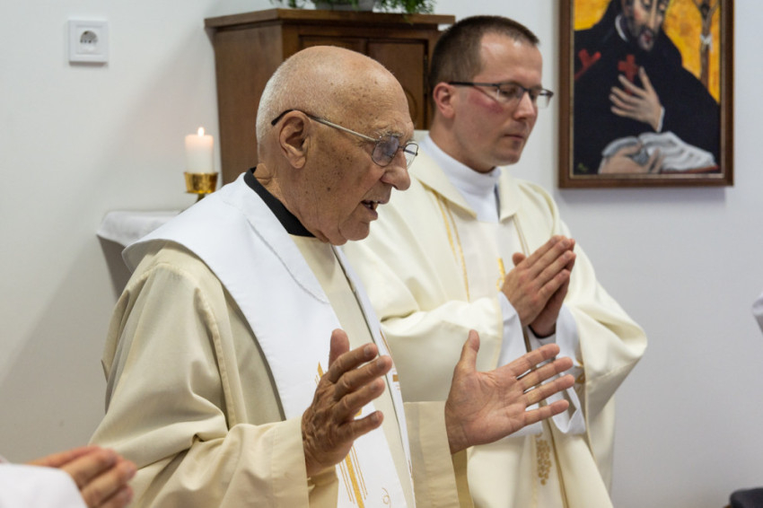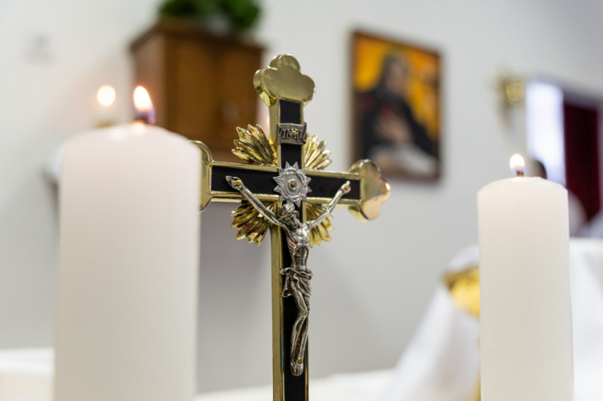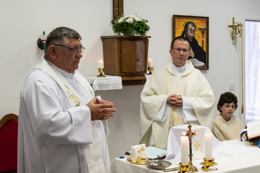 Az újonnan kialakított szakrális térben Máger Róbert vizet szentelt, majd a szentelménnyel megáldotta a kápolnát, meghintve annak oltárát és falait.