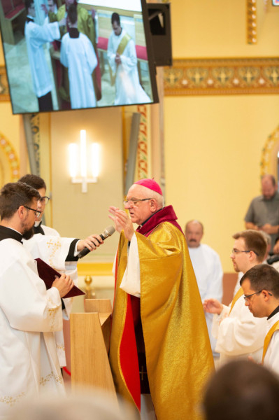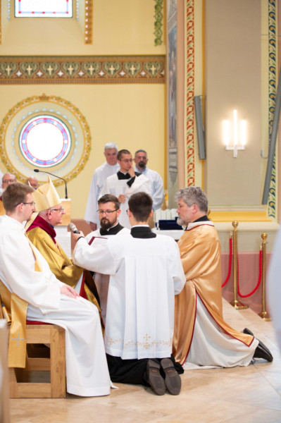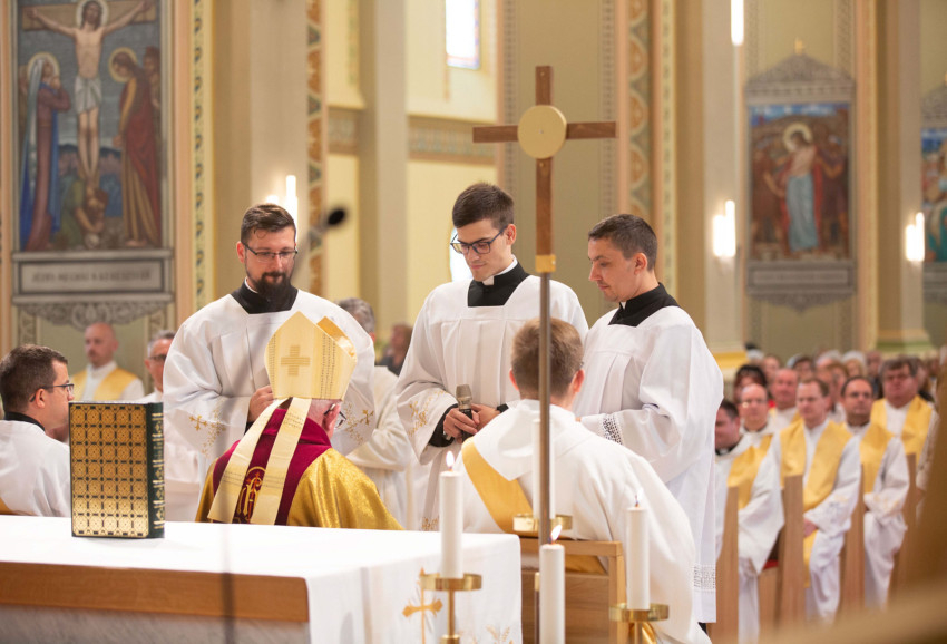 A főpásztor kézrátétele és felszentelő imája következett; majd az új diakónusok magukra öltötték a stólát és a dalmatikát, mely a szerpapok viselete.