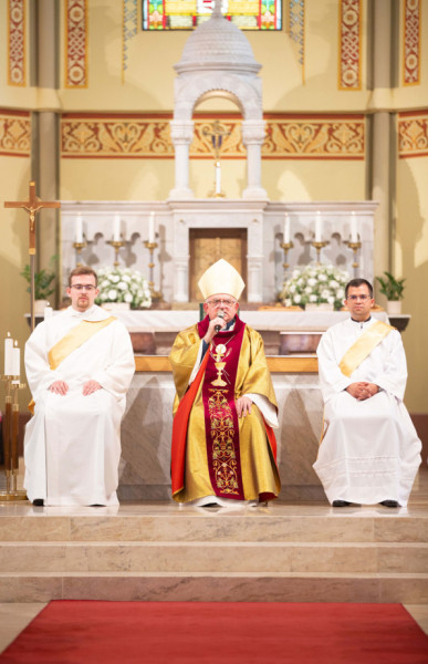 Kérjétek, és én is kérem veletek együtt a Szentlelket, hogy mindezt lángoló szívvel, szenvedélyes, tüzes szeretettel tegyétek. Akarjatok nagyszerű diakónusok és keresztények lenni. Sose érjétek be a középszerűséggel. Ha erre igent mondotok, és erre kéritek a Szentlelket, akkor ő kiformálja bennetek a szentet – fogalmazott Varga László püspök prédikációjában.
