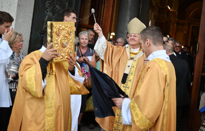 A nuncius köszöntője után a főpásztor áldást mondott, s meghintette szenteltvízzel a bazilika falait. Szentbeszédében Szent Mihály közelgő ünnepe kapcsán a Gonosszal vívott harcról, s az angyalokról elmélkedett.