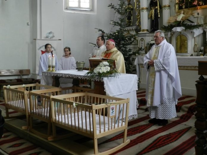 Az ünnepi szentmisét Tamás József püspök – akit még Márton Áron szentelt pappá 1968-ban – mutatta be január 13-án Csíkszentdomokoson. A gyulafehérvári segédpüspök a szentmise végén megáldotta a bölcsőket és a befogadó családokat.