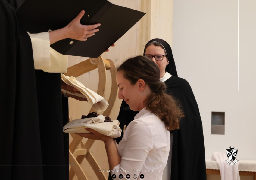 A vesperás után került sor a beöltözés szertartására: Dömötör Zsóka jelölt új nevet kapva, Regina nővérként kezdte meg a noviciátus két évét.
