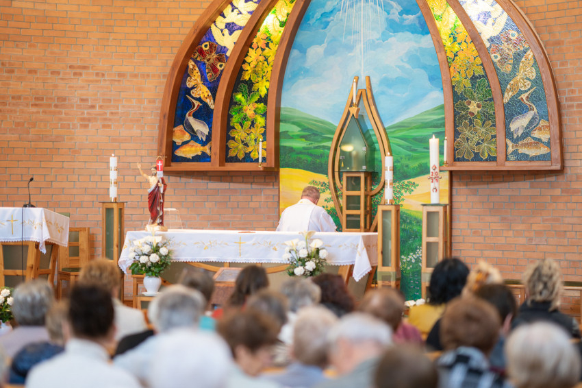 Aranyhegy tetején üldögélő koldusok vagyunk. Jézus Krisztusban minden a miénk lett, hiszen Isten lett a miénk, s ő a minden. Az Atya újra és újra mindent odaad nekünk Krisztusban, mi mégis lázadunk, morgolódunk, elégedetlenkedünk, pedig minden a miénk, s nincs hála a szívünkben. Nem tudunk mit kezdeni a legnagyobbal, aki maga a Szeretet, az Irgalom, s ezért elindulunk szeretetmorzsákat koldulni. Pedig ha elfogadnánk a mindent, s betöltenénk naponta vele a szívünket, akkor tele lennénk hálával, derűvel és örömmel – hangsúlyozta a megyéspüspök.