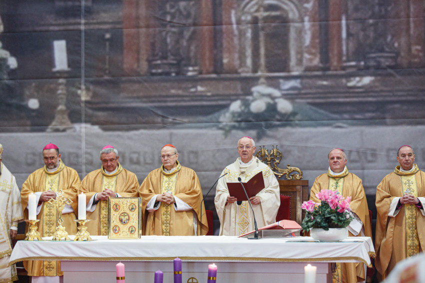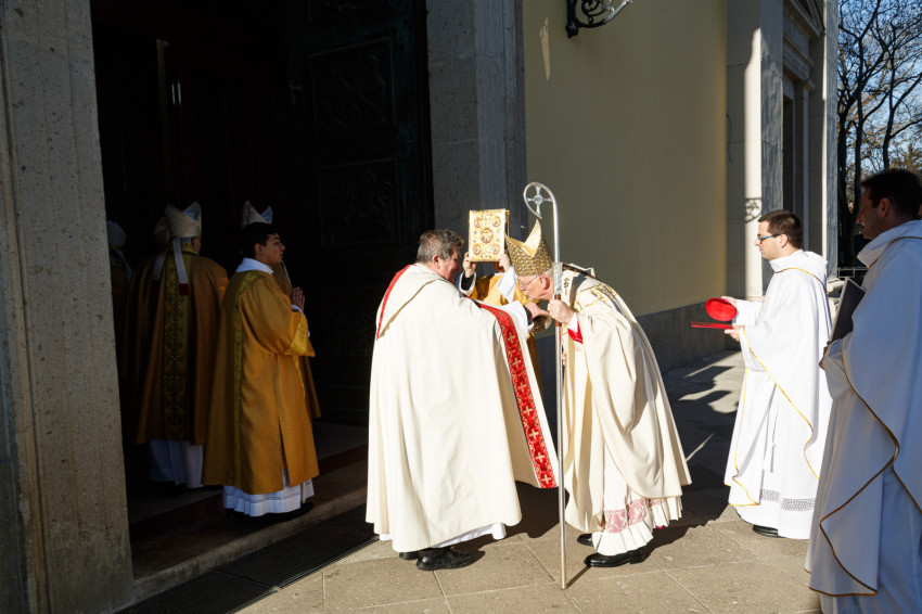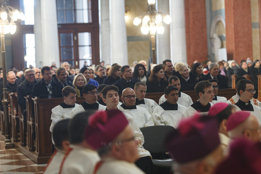 Veres András győri megyéspüspök, a Magyar Katolikus Püspöki Konferencia elnöke kiemelte, a püspöki kar tagjait a szolgálat gyűjtötte egybe, s így végzik feladatukat. Felidézte: Szent II. János Pál pápa több mint 30 esztendeje maga mellé hívta Ternyák Csabát, hogy a földi egyház vezetésében részt vállaljon, akinek püspöki jelmondata – „Ipsi gloria in saecula!”, azaz „Dicsőség neki mindörökké!” – pontosan utal küldetésére.
