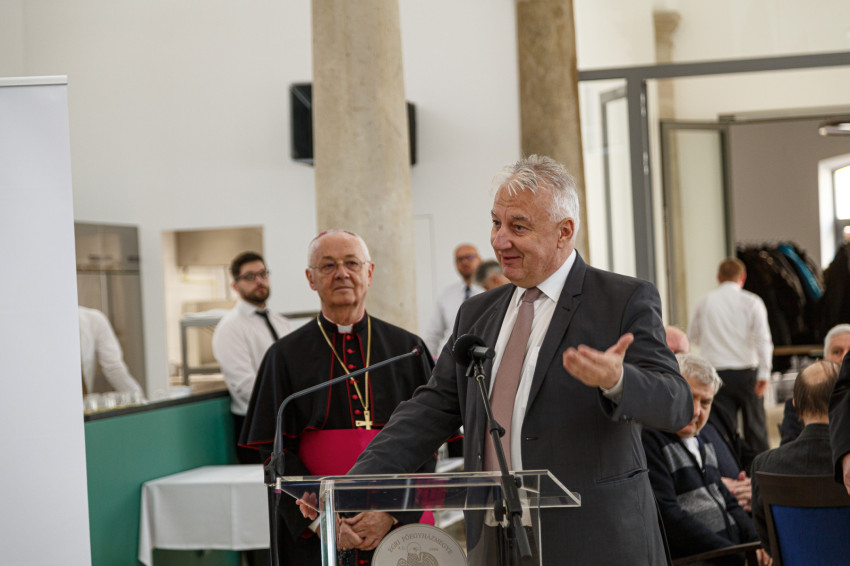 Az egyházi iskolák visszaadásának ügye jelentős ellenállást váltott ki, az ingatlanrendezés és a finanszírozás kérdéseiben különösen is, de mára a katolikus egyházi oktatási és szociális intézmények komoly szerepet játszanak ezen a területen. Az Eszterházy Károly Katolikus Egyetem tanárképzésben vállalt munkájára is nagy szükség van – tette hozzá. Semjén Zsolt felolvasta Orbán Viktor miniszterelnök köszöntőlevelét, melyben a kormányfő jókívánságait fejezte ki az ünnepeltnek.