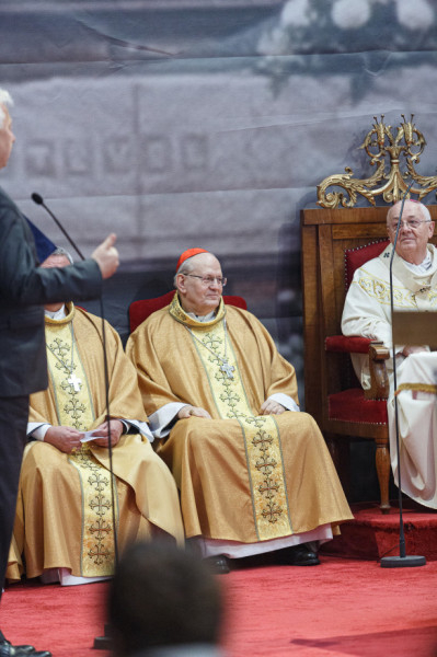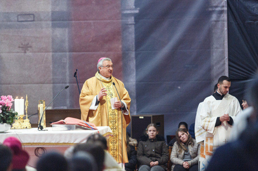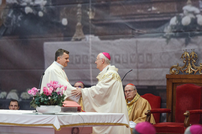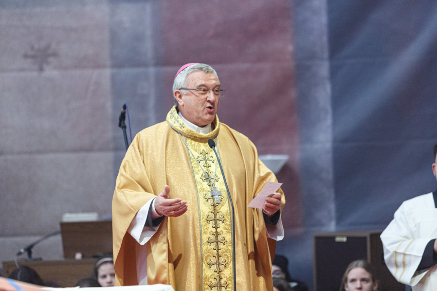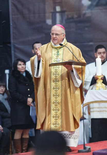 A szentmise kezdetén fiatalok verssel és virággal köszöntötték a főpásztort, majd Michael W. Banach érsek, apostoli nuncius mondott köszöntőt, tolmácsolva Ferenc pápa jókívánságait, aki lelki és atyai közelségéről, imádságáról biztosította az ünnepeltet.
