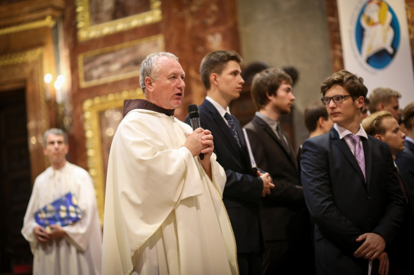 Várszegi Asztrik prédikációját egy Ferenc pápára tett utalással kezdte, aki bátorította a püspököket, hogy ne féljenek a nyájtól, menjenek közel hozzá. Ezzel a főapát utalt saját lelki és fizikai közelségére is, amellyel jelen volt a fiatalok között, egészen az oltárlépcső aljáig „ereszkedve” a szentbeszéd idejére.