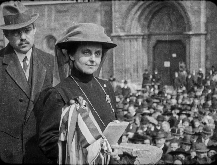 A Filmarchívum oldalán a korabeli beszámolót idézve részletesen bemutatják a felvételt, melyen többek között a beszédet mondó Slachta Margit is látható.