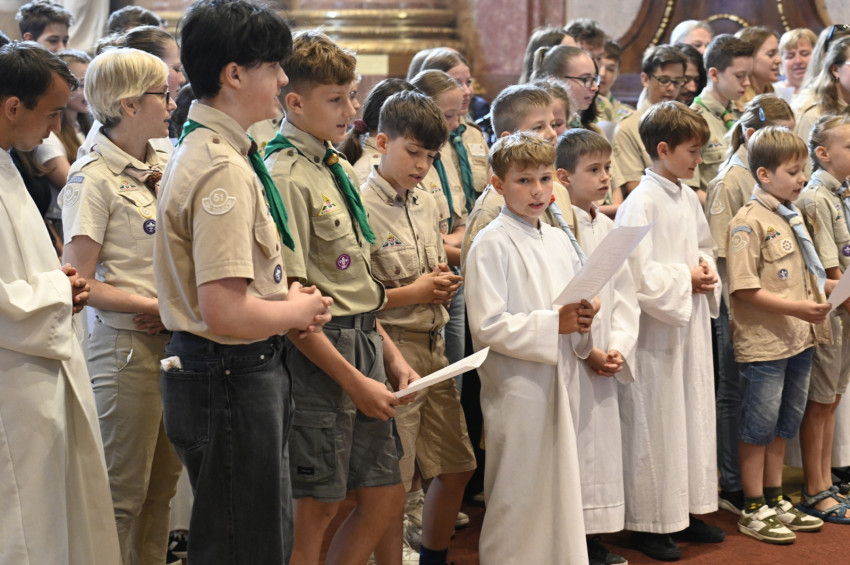 A vasmisés áldás után a Kálvária cserkészei énekeltek Horváth József atyának, aki ezt követően a püspöki palota kertéjben tartott agapén mindenkivel kezet fogott.