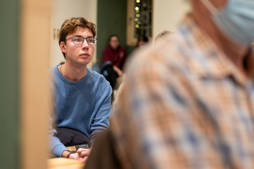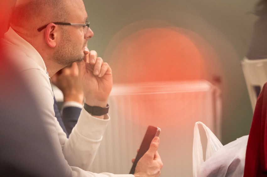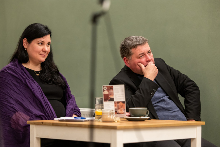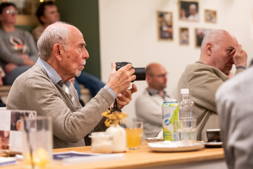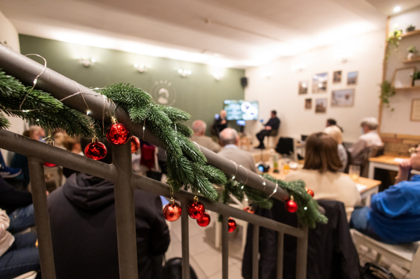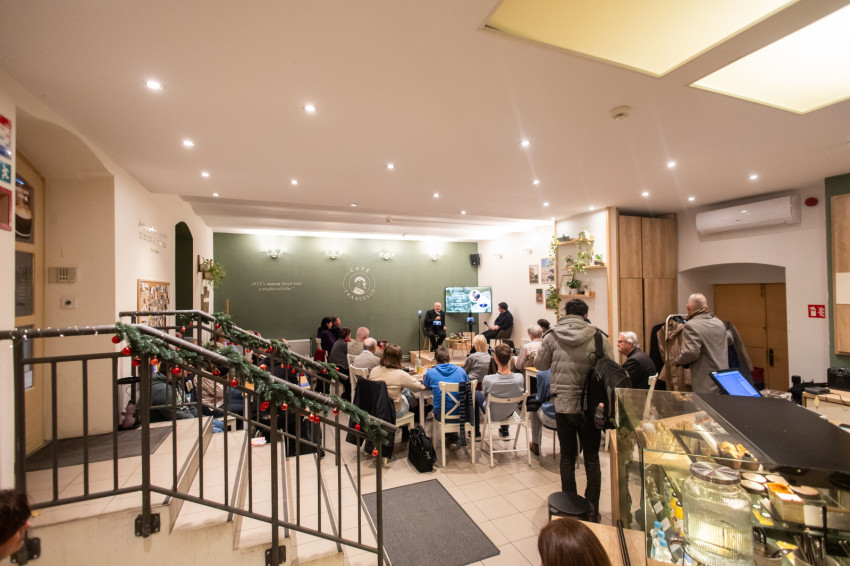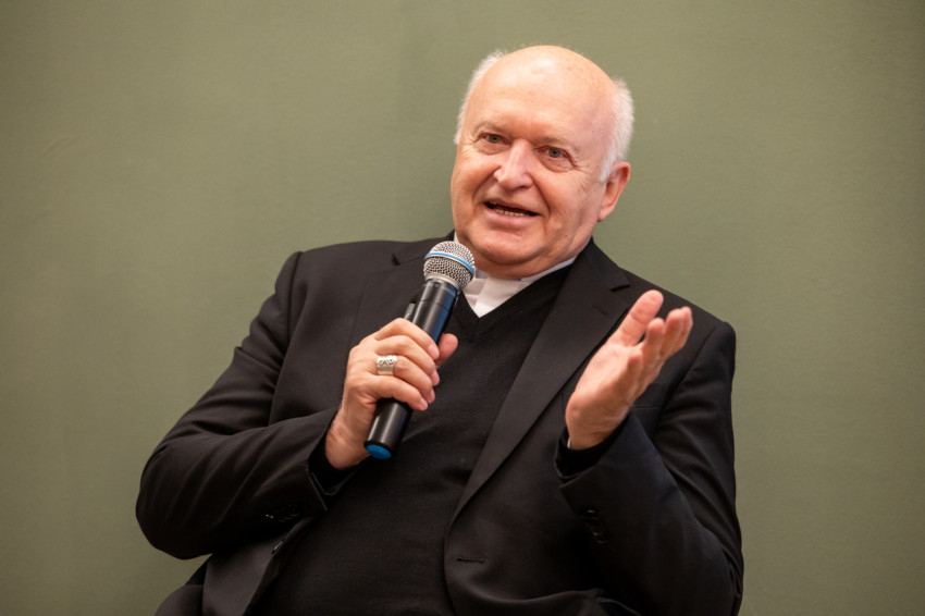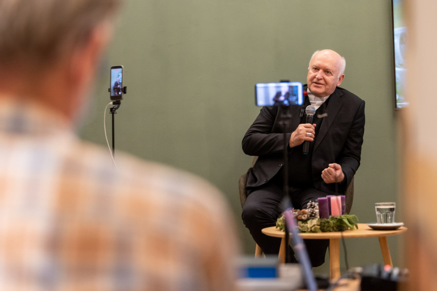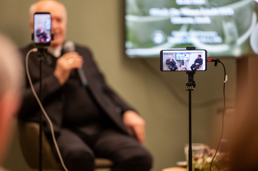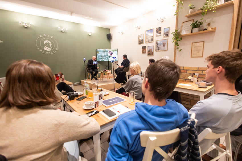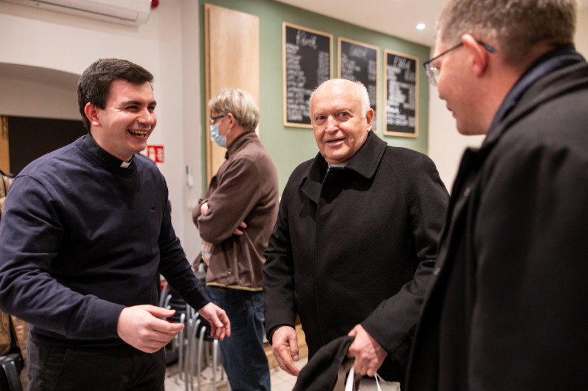 A Konklávé után. Merre tart az Egyház XIV. Leó pápával? címmel megtartott nyilvános beszélgetés elején Német László bíboros életútját ismerhette meg a kávézó közönsége.