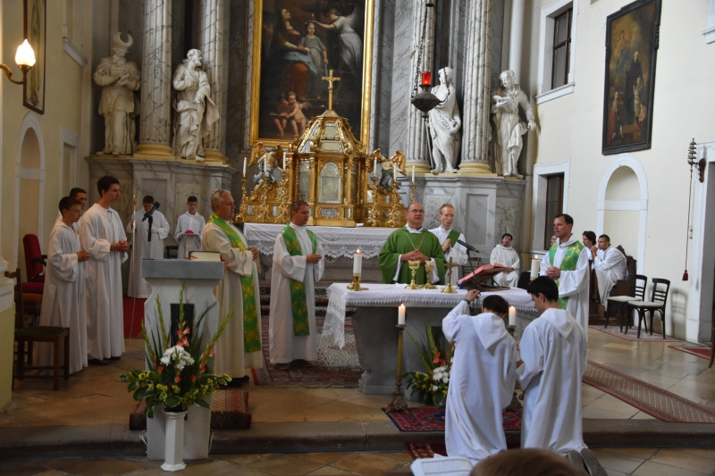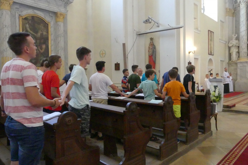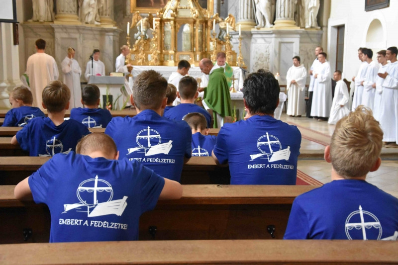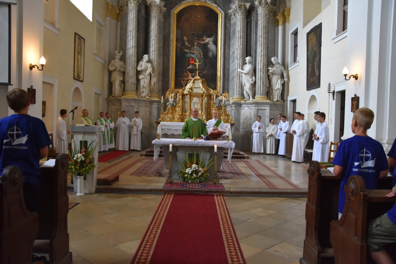 A záró szentmisét a főpásztor mutatta be. Szentbeszédében utalt arra, hogy a tábor alatt többféle karizmával ismerkedtek meg a fiúk. A karizma mindig Istentől kapott ajándékot jelent, de egyben a hála és köszönet kifejezése is. Amikor az oltár köré állnak – legyen szó papokról, diakónusokról, akolitusokról, világiakról –, mindig megköszönik Krisztusnak, hogy áldozati oltára köré hívta őket és szolgálhatnak neki.