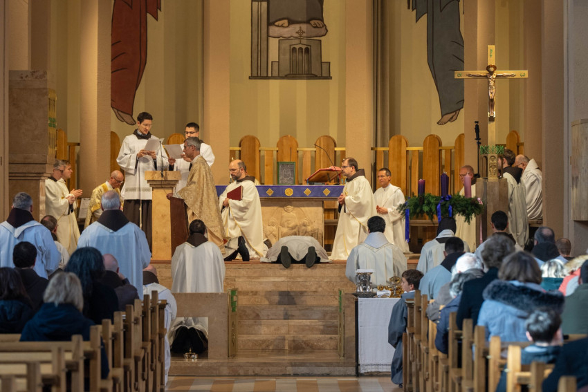 Ezt követően a legteljesebb önátadás jeleként arcra borult az oltár előtt, ezzel is jelezve, hogy meghal a világnak, és életét teljesen Istennek szenteli.