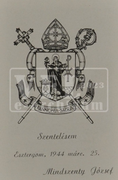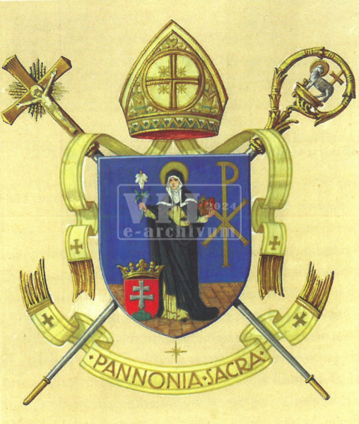 „Árpád-házi Szent Margit liliomos, misekönyves alakja azért foglal helyet címeremben, mivel Szent Margit szentté avatása idején kerültem kapcsolatba egyházmegyémmel: másrészt alakja felidézi az összes magyar szenteket és Veszprém szent múltját is, a szent Pannoniát, a Pannonia sacrát” – írta Mindszenty József.