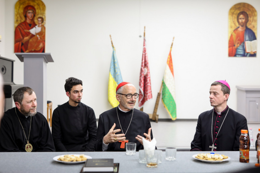 Luscsák Nílus, a Munkácsi Görögkatolikus Egyházmegye püspöke mint házigazda fogadta a magyarországi vendégeket és a felekezetek képviselőit. A határ menti városban a pápa követét fogadta Lucsok Miklós, a Munkácsi Római Katolikus Egyházmegye apostoli kormányzója és az egyházak helyi vezetői. A katolikus, a református és az evangéliumi egyházi felekezetek részvételével megtartott találkozón jelen volt Petro Zharkovsky, az Ukrajnai Karitász igazgatója és Viktor Mikita, a Kárpátaljai Megyei Katonai Közigazgatási Hivatal vezetője. A bíborost útjára elkísérte Szocska Ábel, a Nyíregyházi Egyházmegye megyéspüspöke, Tóth Tamás, a Magyar Katolikus Püspöki Konferencia (MKPK) titkára, Écsy Gábor a Katolikus Karitász igazgatója és Sajgó Szabolcs SJ, a Jezsuita Menekülszolgálat rendi képviselője.