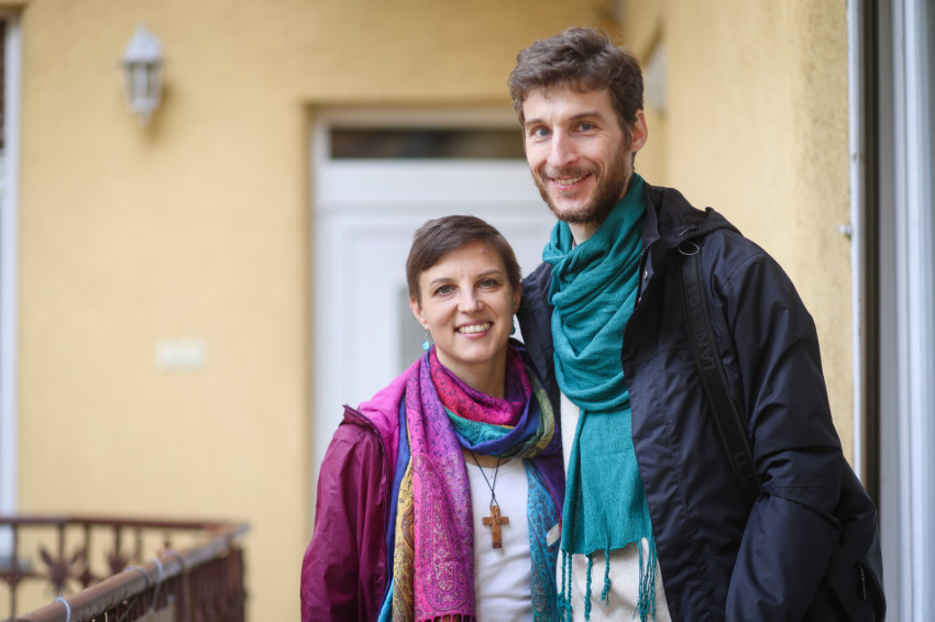 Zsuzska és Attila nem családos közösséget kerestek, hanem olyat, ahol szerzetesekkel is egy közösségben lehetnek, családként. „Az esküvőnk előtti hétvégét a Tábor Hegyi Napokon töltöttük, a nyári ifjúsági táborunkban, ott ismerkedtünk meg a közösséggel – kezdi Zsuzska a saját történetüket. – Megszólított bennünket ez a lelkiség. Eldöntöttük, hogy részt veszünk a közösségnek a Bárány Tanítványai elnevezésű hároméves ifjúsági képzésén, amely radikálisabb keresztény életre vezet a közösség lelkiségében. Amikor végeztünk, szerettünk volna szorosabban is összefonódni a közösséggel.” Zsuzskának és Attilának két kislánya van. A fővárosi közösséghez kapcsolódnak, otthonuk csupán pár lépésre van az Örökimádás-templomtól. Zsuzska képzőművész, ő tervezi a közösség arculatát, amely a médiafelületeken látható. Attilával közösen szolgálnak az Örökimádás-templomhoz kapcsolódva és a közösségi lelkigyakorlaton.