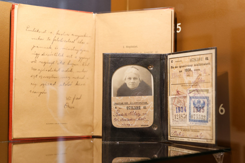 Az irodalomtörténész felhívja a figyelmünket a nagymama íróasztalán heverő levélre. A Babits család akkor már Pécsett élt, és ő vigyázott a két unokájára. Azt írja a lányának, Aurórának, Babits édesanyjának, hogy éppen Pécsre látogatott a király, és bár zuhogott az eső, egy pillanatra kihajolt a hintóból, így a gyerekek láthatták Ferenc Józsefet. A család egyik kedves emléktárgya Ferenc József és Erzsébet királynő üvegszobra. Nagyon szép üvegtárgyak, ezüstkanalak, imakönyv, fotóalbum, Poesie feliratú kötet, ami emlékkönyvként funkcionált, illetve az édesanyja ebbe vagy az ehhez hasonló kötetekbe írta bele a kedvenc versidézeteit. Babits Mihály fiatalkori verse, az Örökségem szinte leltárszerűen sorolja fel ezeket a tárgyakat.