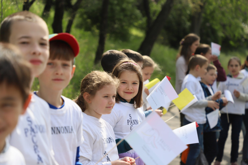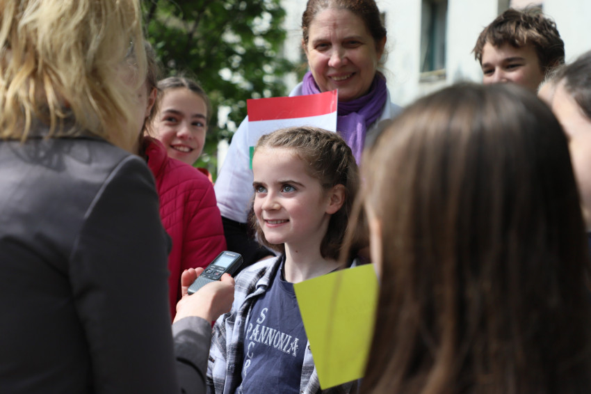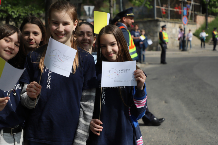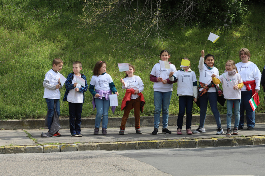 Az autókonvoj elhaladtával megszólítottuk a Dózsa György térnél összegyűlt iskolásokat és tanáraikat. A Pannonia Sacra Katolikus Általános Iskola és Óvoda harmadikosai szinte egy szívvel-lélekkel mondták, hogy már nagyon várták a Szentatyát.