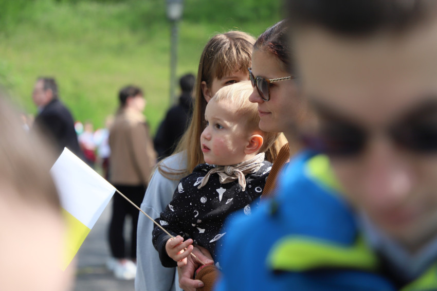 Majd egy fiú csatlakozik a csapathoz, Benedek: „Nagyon örültem, hogy itt volt, és tudtunk neki integetni, de a legnagyobb örömöm az, hogy a pápai misén fogok ministrálni.”