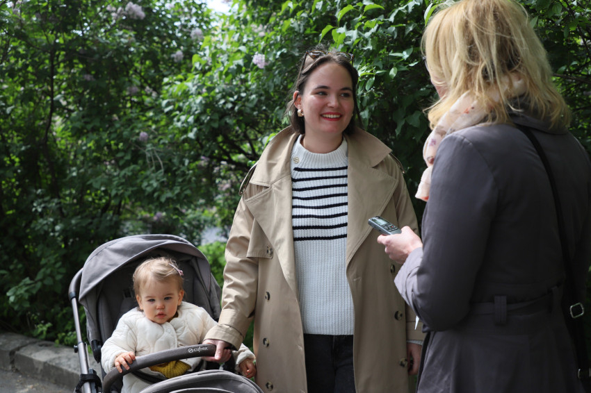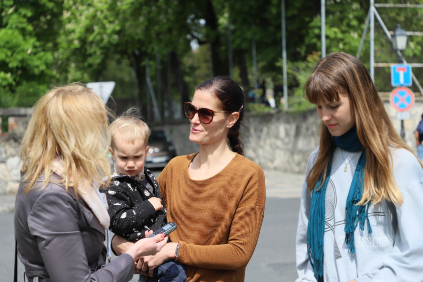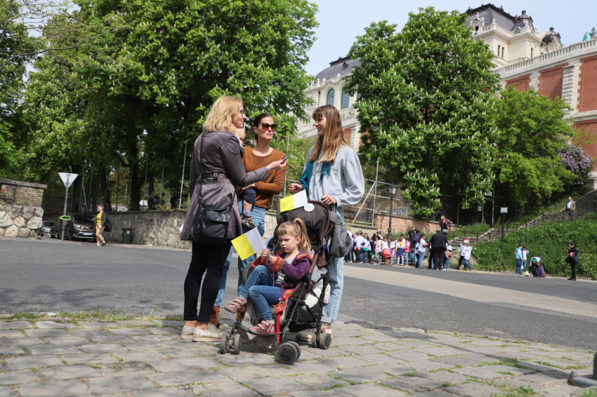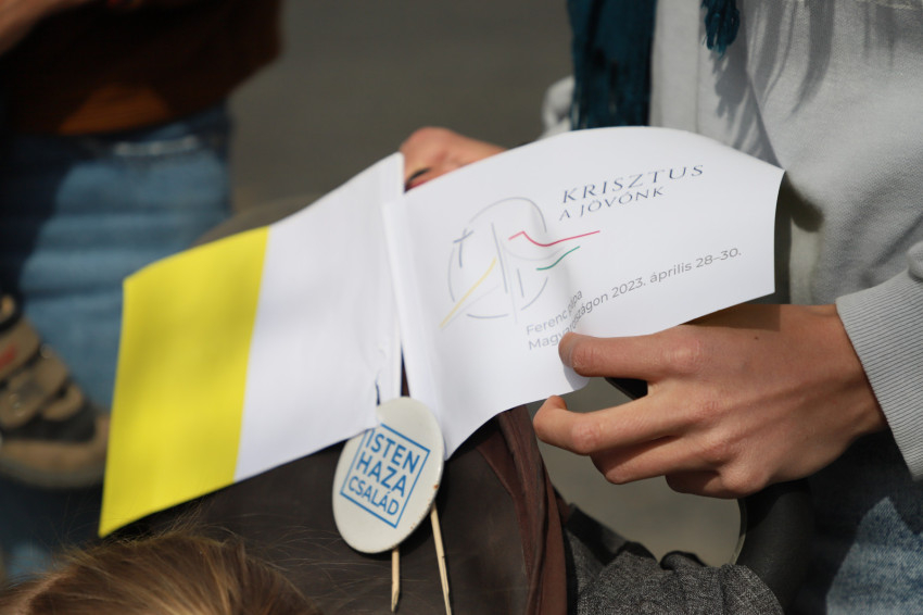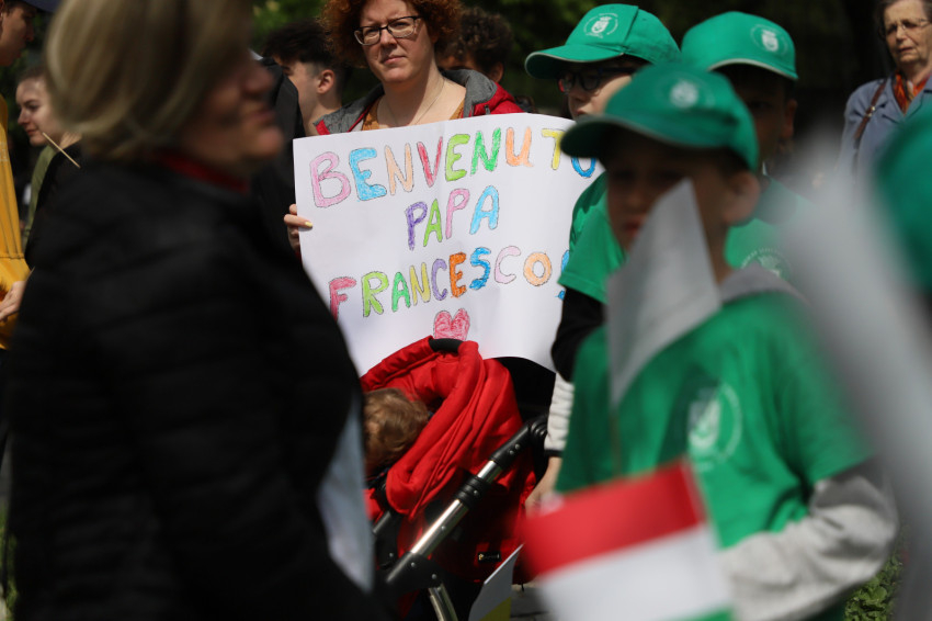 Egy fiatal anyuka egy nagylánnyal és két kicsi gyerekkel, két babakocsival jött. „Elindultunk a gyerekekkel játszótérre, útközben jöttek szembe a Pannonia Sacra iskola pólóját viselő gyerekek. Már sejtettem, hogy a pápát akarják megnézni. Megkérdeztem a tanító nénit, hova jönnek, mondták, hogy ide, a Dózsa György útra érkezik a pápa egy fél óra múlva. Sarkon fordultunk, és kijöttünk ide” – kezdi Edina, akiről később kiderül, hogy hat gyermeke van, a többi iskolában és óvodában.