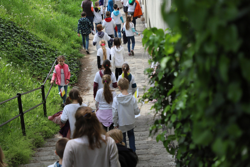 – teszi hozzá Zoé, aki ugyancsak 10–11 éves. „Mindenki felvette a zöld sapkát” – mondja egy fiú, majd Dávid magyarázza: „Azért, hogy lássák, csoportban vagyunk. Tudtuk, hogy ez az egyetlen esély ebben az évben, hogy láthassuk őt.”