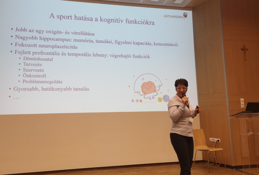 Fodor Szilvia előadása elején a mozgás testi, szellemi fejlődésre, érzelmekre, társas kapcsolatokra gyakorolt fejlesztő hatásairól beszélt. E hatások akkor aktiválódnak, ha a sporthoz öröm kapcsolódik.