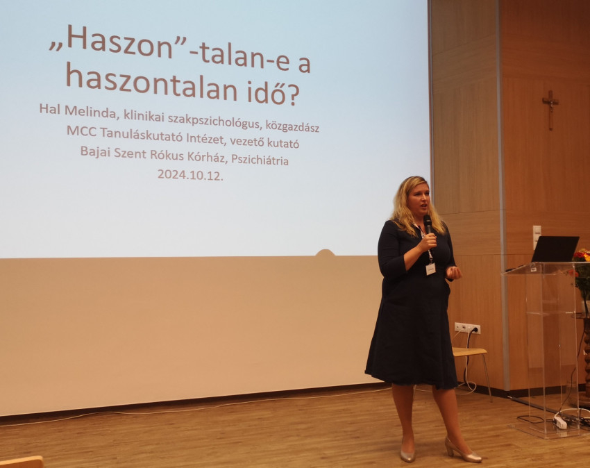 Hal Melinda klinikai szakpszichológus, közgazdász A „semmi” az „valami”? címmel tartotta meg előadását. Kifejtette: az idegrendszerünket naponta érő ingerek között nehéz megőrizni stabilitásunkat. Meglepő módon ebben fontos szerepet játszhat az unalom. A tanulás segítőivé válhatnak ugyanis az olyan látszólag haszontalan tevékenységek, mint az unalom, mely ösztönözheti a kreativitást, vagy a rosszalkodás, csínytevés, mely olyan asszociatív idegpályákat fejleszthet, amit más tevékenységek nem. A mai kor a folytonos cselekvés- és élménykényszerrel azonban megakadályozza az unalmat. A gyerekeket lekötjük, hogy ne rosszalkodjanak, így lehetőségük sincs megtapasztalni az unalom áldásos következményeit. Pedig