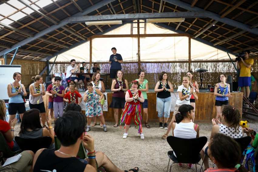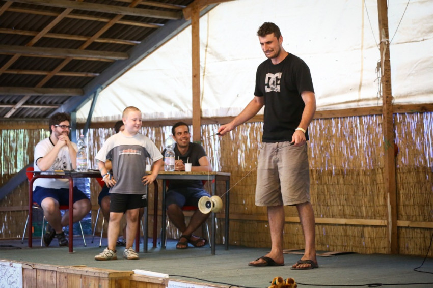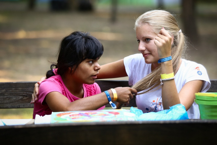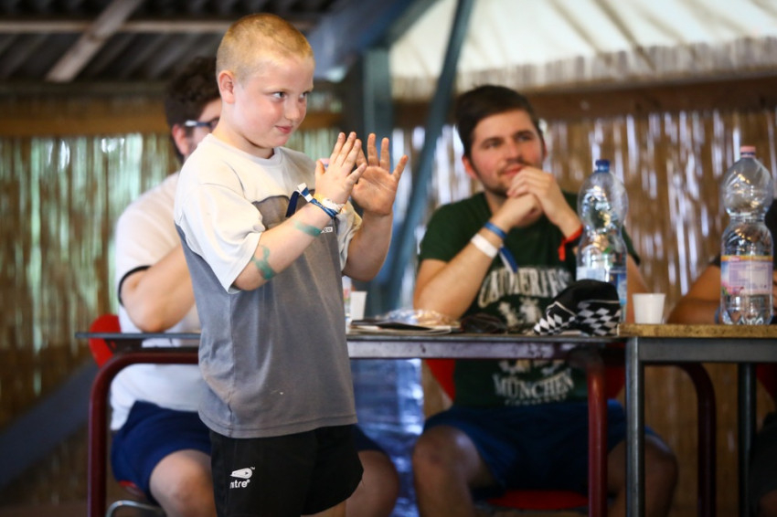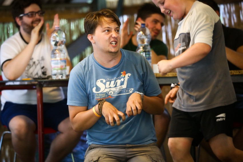 – A tábor első napja mindig a segítőknek szól. Ez egy bemelegítő nap, érzékenyítő játékokkal próbáljuk bevonni őket ebbe a munkába. Megpróbáljuk megéreztetni, mit jelent siketként, vakként élni. Meghívjuk a szakma képviselőit, akik előadást tartanak például a Down-szindrómás, autista gyerekek jellegzetes viselkedési mintáiról vagy a kerekes székesek gondozásáról. Mindig van az elsősegélynyújtás alapjait ismertető előadás is, ennek során mondjuk el, mi a teendő epilepsziás roham esetén, mert az szinte minden táborban előfordul. A segítők előre megkapják az anamnéziseket, ez részben megismerteti őket a gyerekekkel. Nem lehet mindenre előre felkészülni, tudni kell rugalmasan kezelni a helyzeteket. Esténként van segítői megbeszélés, melyen mindenki ott van, ezt a csoportvezetői megbeszélés követi.