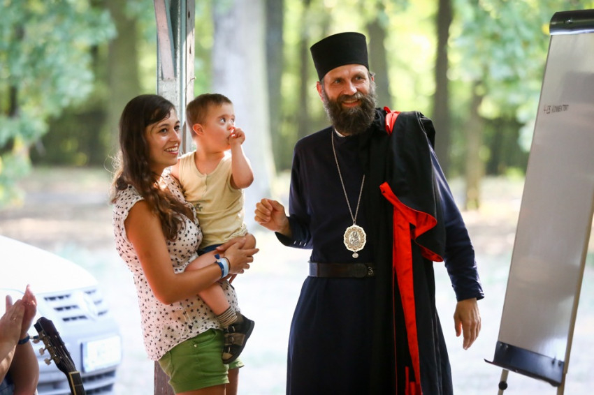 – Nem telik el nap imádság nélkül. Nagy hangsúlyt fektetünk a szertartásokra, melyek a görögkatolikus liturgia szerint folynak. Alapvetően nem feltétel, hogy keresztény legyen az illető, sem a segítőktől, sem a táborozóktól nem várjuk el. Minden reggel tartunk imádságot, a részvétel fakultatív. Azt azért szeretjük, ha mindenki részt vesz a szertartásokon, mert ez is közösségi program, de nem muszáj imádkozni, elég, ha a közelben hallgatják. A napot esti imával fejezzük be, amelyet általában valamelyik papnövendék tart. Így adjuk meg a nap ívét. Vannak régi damjános papnövendékek és atyák, akik visszajárnak, és egy-egy estén vezetnek imádságot. Ez lehet ének, néhány gondolat a Szentírásból, kisebb történetek. Az ünnepnapokon próbáljuk tartani a görögkatolikus szertartásrendet. Látszik a kispapokon a szeretet, a gondoskodás. Ahogyan a csoporthoz, a segítőkhöz, a gyerekekhez fordulnak, az önmagában tanúságtétel.