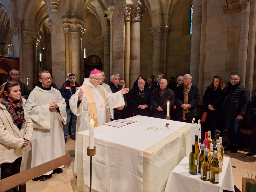 „Milyen érdekes, hogy Jézus lakomához hasonlította a mennyek országát. Egy lakomához, ahol nem hiányzik a bor sem! Talán ez azt jelenti számunkra, hogy a kulturáltan és igényesen ápolt hagyományok – közöttük a borkultúra is – nem pusztán ínyencséget és szórakozást jelentenek, hanem a közösség megteremtésének, a szeretet kifejezésének, emberi mélyülésünknek, emberségben való gazdagodásunknak is méltó alkalmai lehetnek. Ezzel a lelkülettel vagyunk most itt, ezzel a lelkülettel imádkozunk és kérjük az áldást a Föld termésére és kezünk munkájának gyümölcsére, az újborra” – zárta beszédét a főapát, majd minden jelenlévőt az oltár köré hívott, és együtt kérték Isten áldását az oltár elé helyezett borokra.