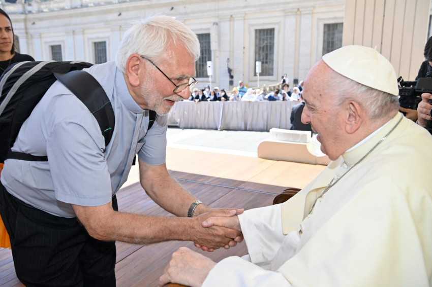 Csak az utolsó nap derült ki, hogy olyan belépőm lesz, amivel a pápa közelében kapok helyet. De az utolsó pillanatig bizonytalan volt, hogy személyesen odamehetek-e hozzá, mert annyira fáradtnak, törékenynek láttam. Imádkoztam, vártam és fölkészültem néhány mondattal – de arra is, hogy esetleg bármikor berekesztik a kihallgatást, mert annyira gyöngének tűnt a Szentatya.