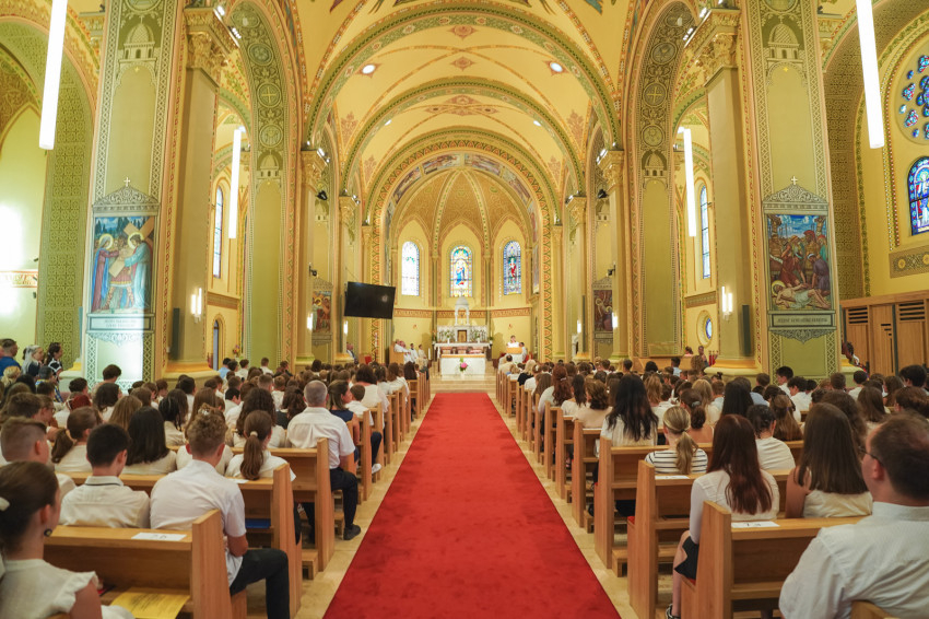 „Egy fontos javaslatom van a nyárra: ha már nem kell iskolába járnod, tanulnod, akkor a pihenőidődet fordítsd arra, hogy növekedj a szeretetben. Mert csak azok boldogok, akik szeretnek és akiket szeretnek. S kár lenne a nyarat szomorúsággal, unatkozással tölteni – fogalmazott szentbeszédében Varga László püspök. – Mi lenne, ha a legkisebbtől a legnagyobbig elhatároznátok, hogy a nyaralás alatt növekedni akartok most nem a tudásban, tanulmányokban, hanem a legfontosabban: a szeretetben?