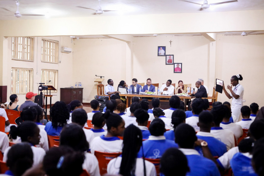 Másnap délután került sor az ünnepségre, amelynek keretében átadták a támogatást a nővérképző új épületéhez. A S. Borromeo Kórház területén jelenleg 300 fős, hároméves nővérképző működik, amely képesítést nyújt ugyan, de nem nemzetközileg akkreditált képzés: ennek eléréséhez négyéves programra van szükség, amely az új épülettel megvalósulhat. Aki diplomás ápolóként végez, később olyan fizetést kap majd a munkájáért, amelyből már meg lehet élni.