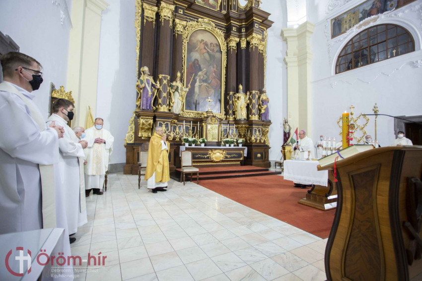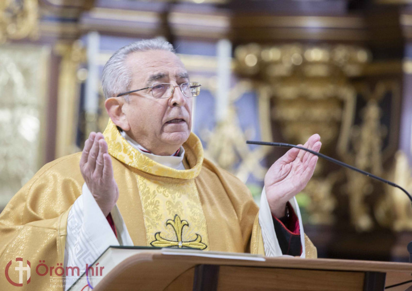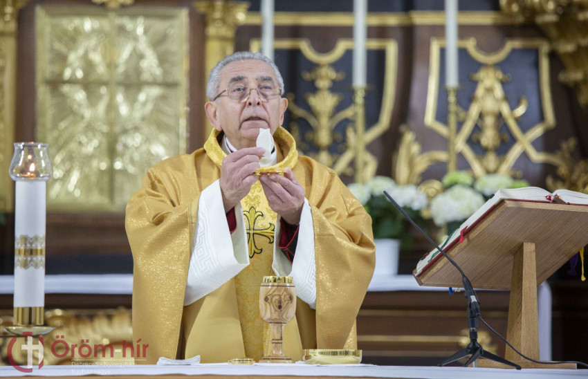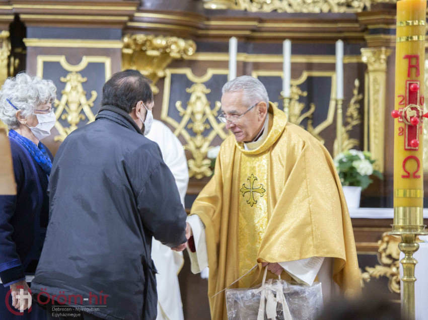András atyát Palánki Ferenc debrecen-nyíregyházi megyéspüspök köszöntötte a szentmise elején. A főpásztor hálát adott a helynök atya 50 évnyi papi szolgálatáért, húsvéti hitéért, amely az egész hivatását áthatja, az örök dolgokra irányítva a rábízottak figyelmét.
