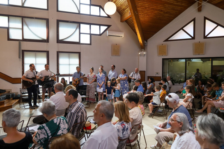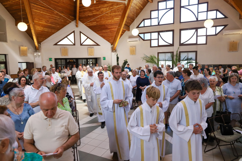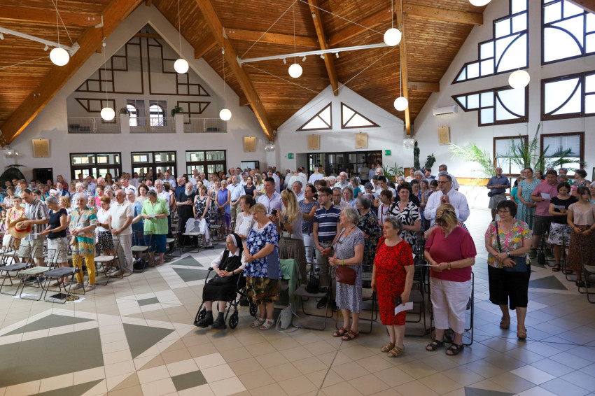 A szentmisén a káposztásmegyeri ifjúsági zenekar és az ország különféle pontjairól érkezett zenészek együtt szolgáltak, majd a szertartás után a helyi közösség és a Fokoláre Mozgalom hazai képviselőinek köszöntői következtek, s hosszú sorban várakoztak a hívek, hogy egy-egy szóval köszönthessék a gyémántmisés Tomka Ferencet.