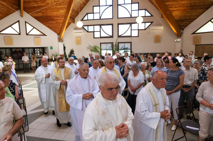 Ezután következett a hálaadás a Fokoláre Mozgalomért is, amely Jávorka Lajos és Tomka Ferenc életében is fontos szerepet tölt be. A „közös kincsek” után a szónok hálát adott Feri atya egész papi életéért, megemlítve nagy példaképeit, köztük Mócsy Imre jezsuitát és Regőczi István atyát. „Szép papi életek nyomán érlelődött benne a hivatás.”