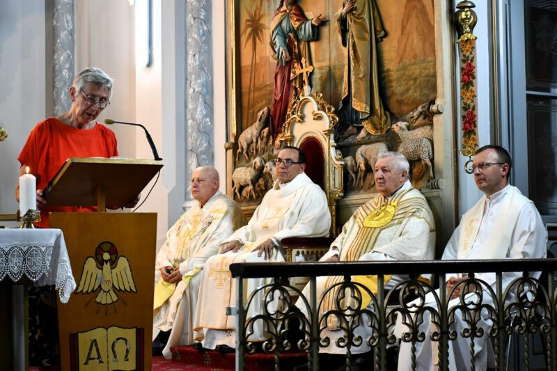 A szentmise végén Szilvágyi Zsolt püspöki helynök megköszönte Simon Ciubotaru temesvár-szabadfalui plébánosnak, a jelen lévő lelkipásztoroknak, a Boldogasszony Iskolanővérek tagjainak és a híveknek, hogy együtt ünnepelték a templombúcsút.