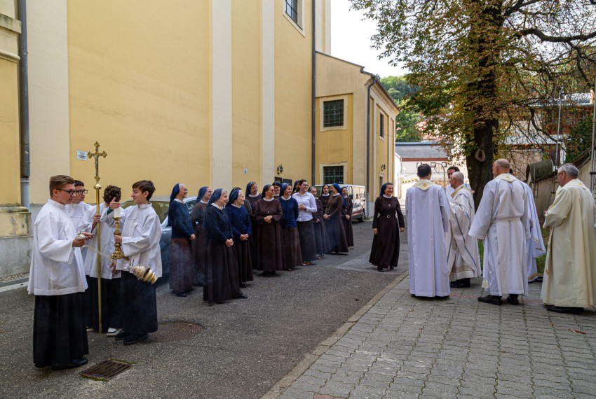 A mai ünnep ilyen hegymenet és egyúttal szemben úszás az árral. Mindannyiunk számára különleges üzenete van ennek a mai fogadalomtételnek. Mit üzen? Azt üzeni, hogy a hit nem magánügy! Krisztina nővér ezt nem a szerzetesház kicsi kápolnájában pár ember előtt teszi, hanem itt az Egyház színe előtt. A püspök, a szerzetesnővérek, szerzetestestvérek, a papság és a hívek jelenlétében teszi le a fogadalmát.